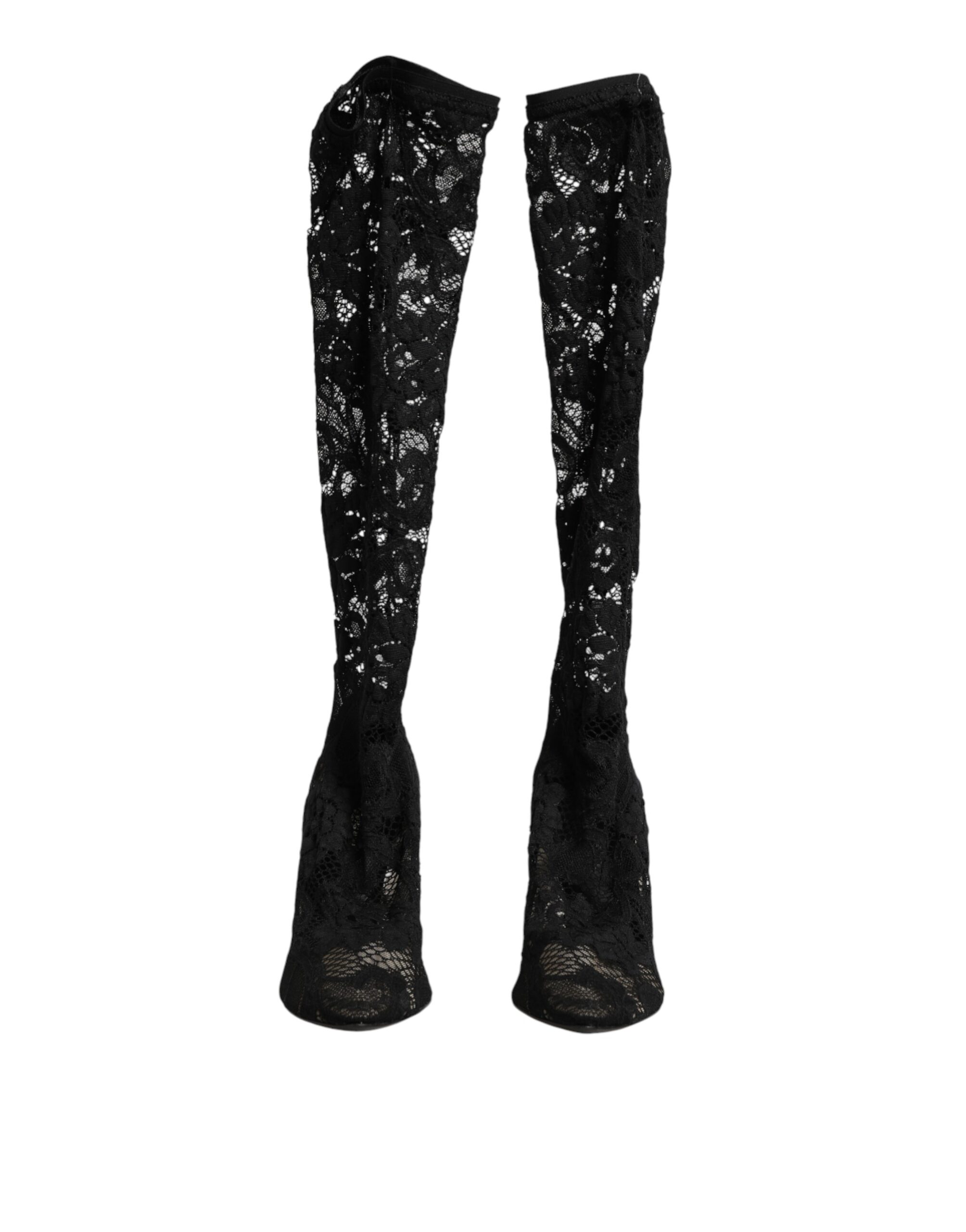 Gorgeous brand new, 100% Authentic Dolce & Gabbana Taormina Lace Sock Boots feature a refined black lace construction that blends the silhouette of pumps with the comfort of ankle socks. Designed with a pointed toe and a slim stiletto heel, they exude timeless femininity and sophistication. Perfect for evening wear or stylish occasions, these lace boots capture Dolce & Gabbana’s signature romantic and luxurious aesthetic.