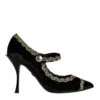Gorgeous brand new with tags, 100% Authentic Dolce & Gabbana Black velvet studded and rose embellished ankle-strap pumps.