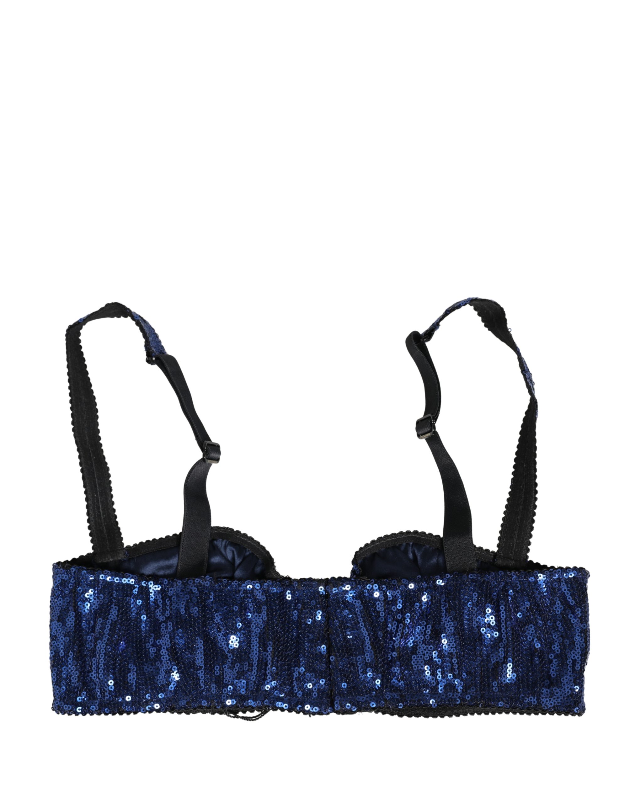 Dolce & Gabbana Blue Sequined Nyon Balconnet Bra Underwear