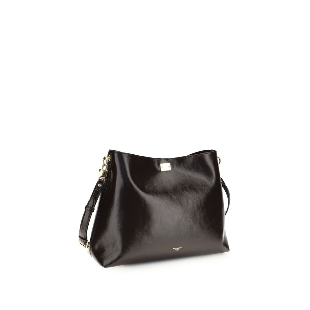The large Vittoria leather Shoulder Bag by Dolce & Gabbana combines functionality and refined style. Featuring an adjustable and removable shoulder strap, a tuck-in closure, and vintage brass details, it is embellished with a mono-galvanic tag and film stamps both inside and out. The interior, organized with a flat pocket, completes this elegant and versatile accessory, ideal for any occasion.