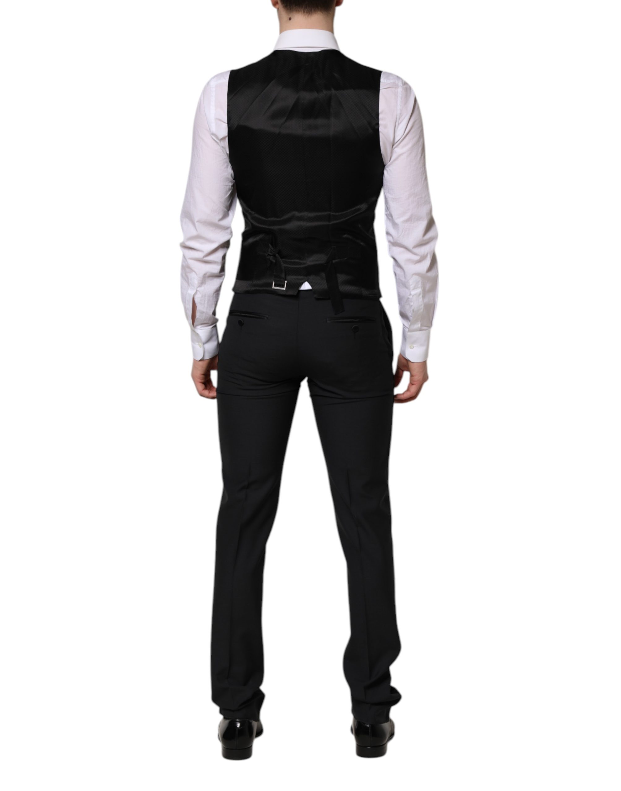 Absolutely stunning, 100% Authentic brand new Dolce & Gabbana three-piece suit is tailored in the sophisticated MARTINI fit, offering a sharp and modern silhouette. Crafted from fine wool, it includes a two-button single-breasted jacket with peak lapels, matching flat-front trousers, and a coordinating waistcoat. Perfect for formal occasions, business events, or black-tie affairs with a refined, contemporary edge.
