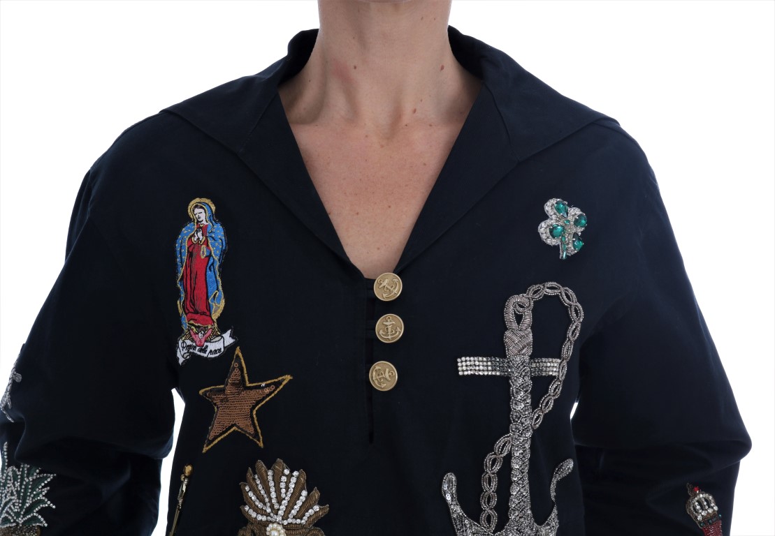 Gorgeous brand new with tags, 100% Authentic Dolce & Gabbana blue cotton Fairy Tale crystal embroidered coat jacket.