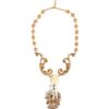 gold-tone brass necklace, adorned with charming fruit and floral pendants. Sparkling crystals and the iconic logo add a touch of opulence, creating a whimsical yet elegant accessory. Perfect for bringing vibrant personality and Italian glamor to day or evening looks.