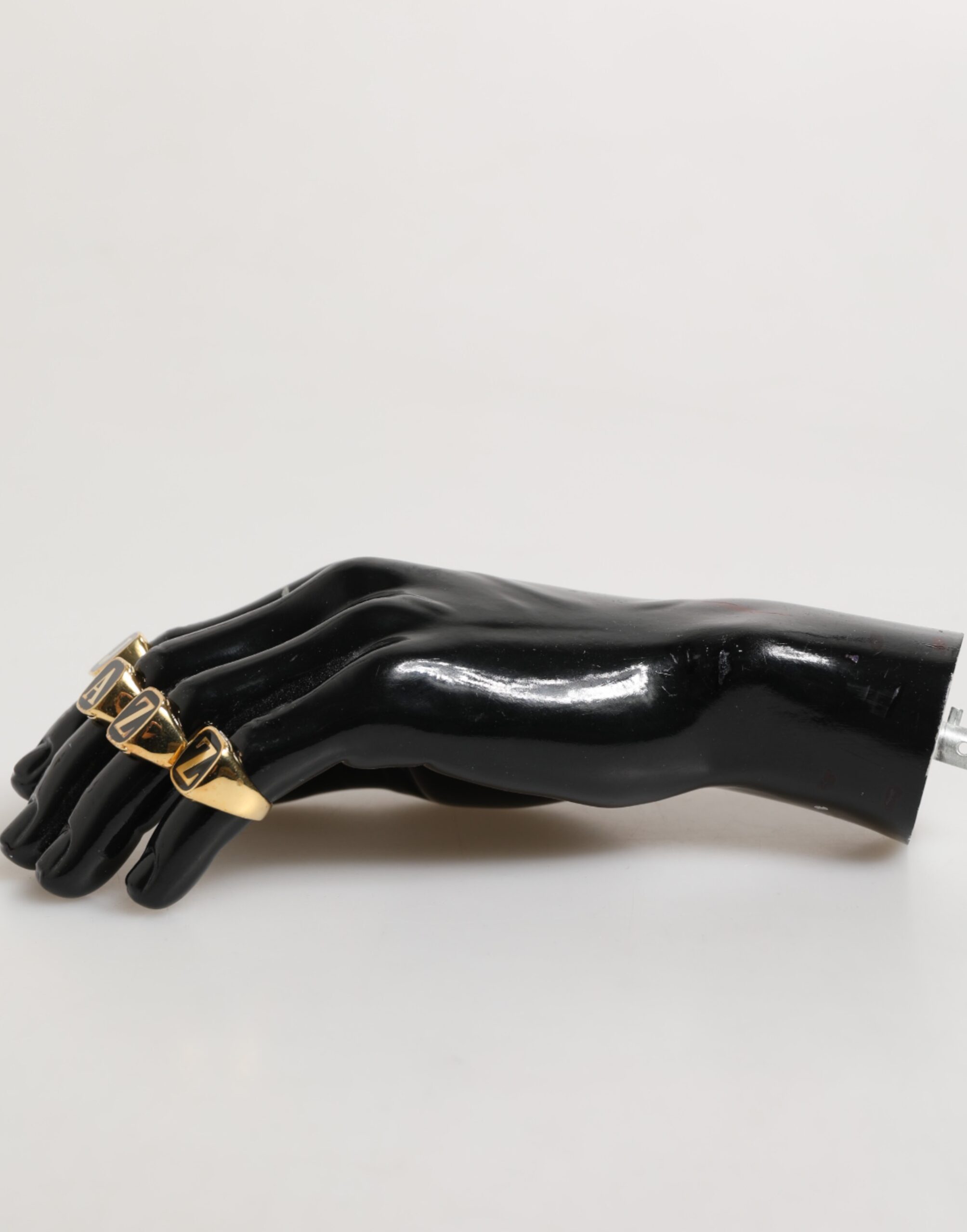 Gorgeous brand new, 100% Authentic Dolce & Gabbana ring set. Features a set of four individual gold-tone brass rings, each displaying a letter to spell out JAZZ. Designed with an adjustable fit, these bold statement rings reflect the brand’s playful yet luxurious aesthetic—perfect for music lovers and fashion-forward dressers alike.