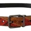 High-quality Italian phyton snakeskin and leather with a unique patchwork design combined with beautiful neutral casual colors and casual zig-zag seams. A unique eye-catching belt full of character.