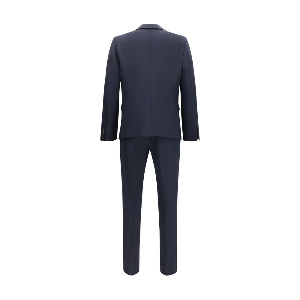 The single-breasted wool-blend Suit by Dsquared2 delivers a contemporary interpretation of classic tailoring. The jacket features long sleeves, classic lapels and a front button fastening, finished with flap pockets, a chest welt pocket and a double back vent for balanced structure. The matching trousers are designed with a zip and button closure, belt loops and welt pockets at the sides and back, the latter finished with buttons. A suit conceived for modern elegance, combining formal construction with a strong, confident attitude.