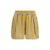 The Pequin Shorts by Fendi feature the iconic Pequin striped pattern and are lightweight and breathable, ideal for the spring-summer season. The elasticated waistband and wide leg ensure comfort and freedom of movement, while the side pockets add functionality to the design. The rear leather patch with FF Selleria detail signs the garment with a distinctive element of the maison. They are perfect for summer outfits, vacations, and leisure time.