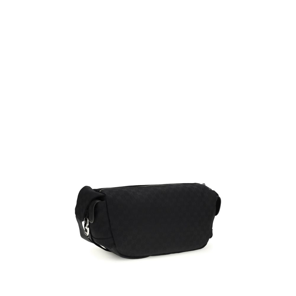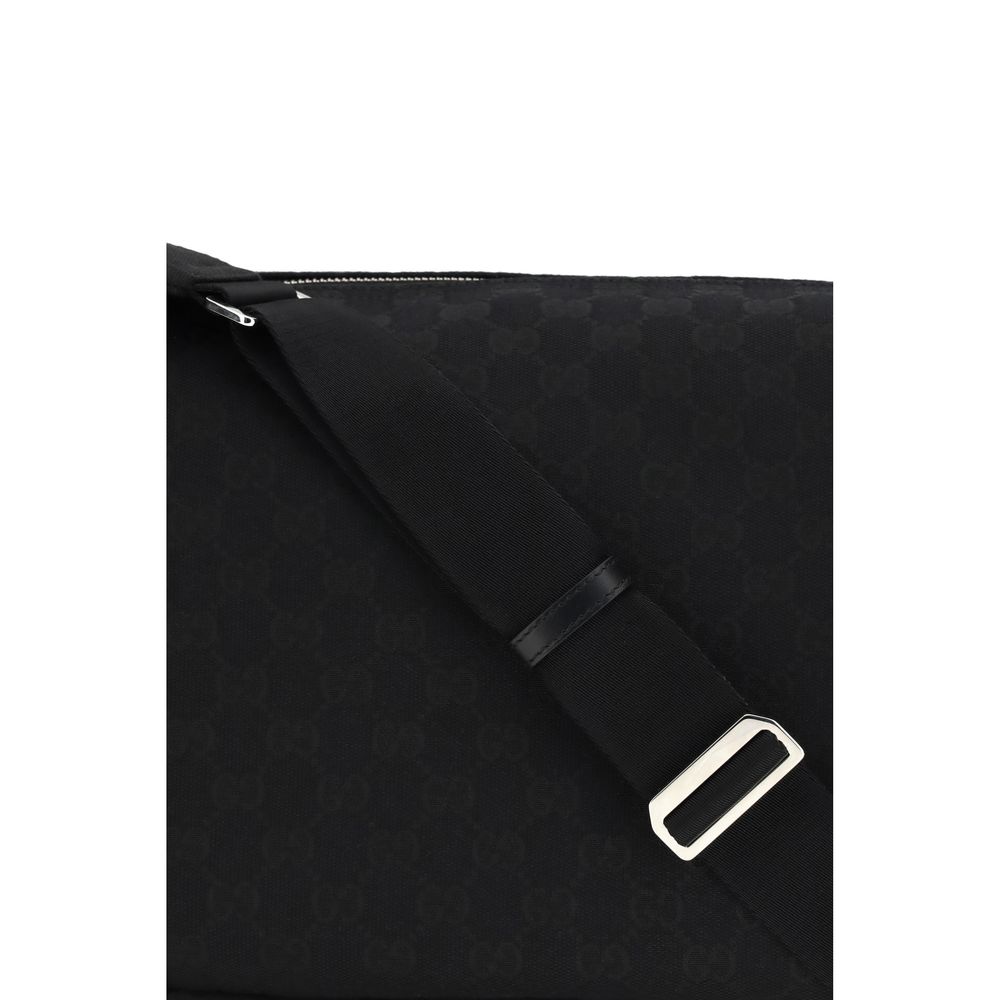 The GG Fabric Shoulder Bag by Gucci features a functional and contemporary design. Black GG fabric, combined with black leather trim, lends understated and versatile elegance. The black nylon-lined interior features a zippered pocket, while the two exterior flap pockets offer practical organization. The adjustable shoulder strap ensures comfort, complemented by a zippered closure for added security.