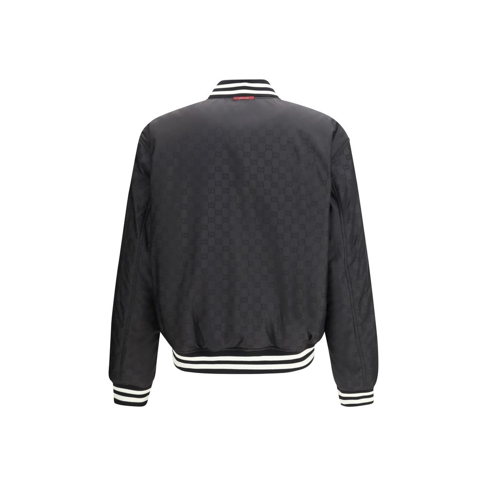 The GG Supreme nylon Jacket by Gucci is a versatile and distinctive piece, featuring a reversible design that offers two looks in one: one side is elegant and monochrome, while the other features the iconic GG Supreme pattern. The jacket has a ribbed collar, cuffs, and hem for a comfortable, refined fit, while the zip closure and two side welt pockets combine practicality and style. Perfect for those looking for an iconic, functional garment suitable for any occasion.