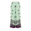 Side opening with gold hook and hidden zip, two side welt pockets, medium length. Gaucho skirt/pants model with symmetrical front/back slits.