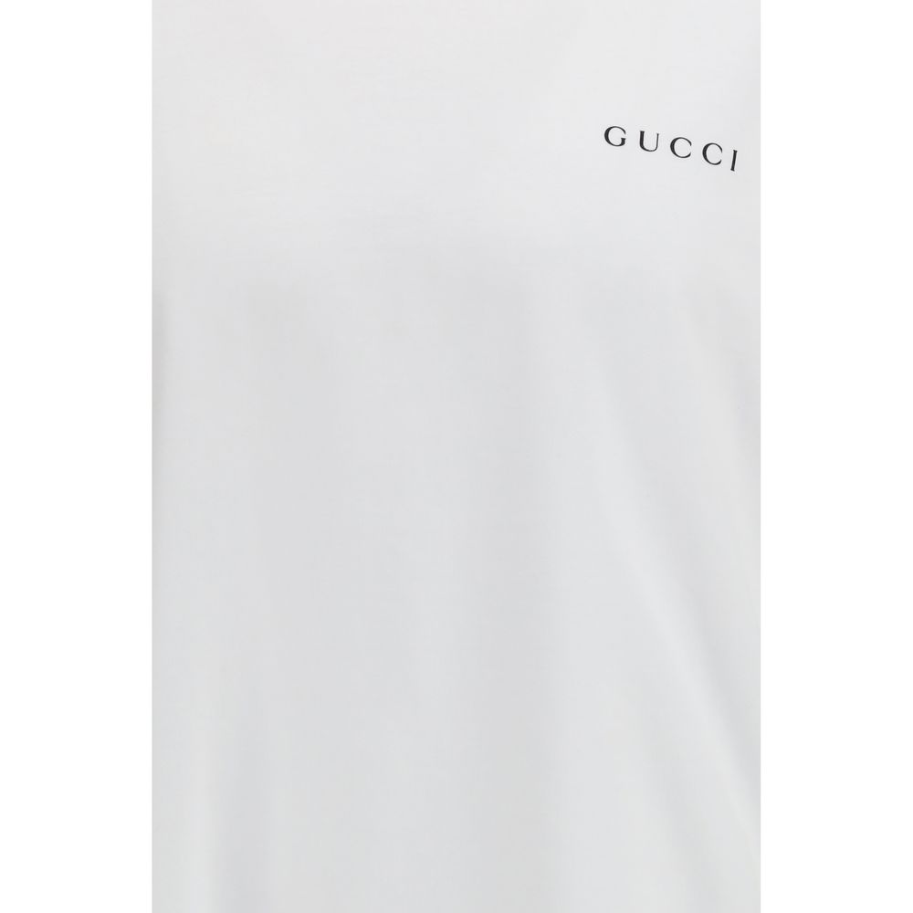 The crew-neck T-shirt by Gucci balances simplicity and visual depth through a distinctly editorial approach. Made from cotton, it features short sleeves and a logo print placed high on the front for a subtle brand statement. The back is fully enriched with a sequence of embroidered designs that turn the surface into a graphic narrative. A piece that expresses a modern attitude by combining clean structure with expressive detailing.