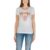 The Guess SS TRIANGLE FLOWERS TEE W5YI08 J1314 women’s short-sleeve t-shirt is an iconic piece that blends style and comfort. Crafted from soft jersey composed of 95% cotton and 5% elastane, it offers a snug, comfortable fit that enhances the feminine silhouette. The design features the renowned Guess triangle logo, embellished with elegant floral decorations that add a touch of femininity and originality. The classic crew neck and short sleeves make it perfect for spring and summer, easily paired with jeans or skirts for a casual yet sophisticated look. Ideal for those seeking a versatile and trendy garment suitable for multiple occasions.