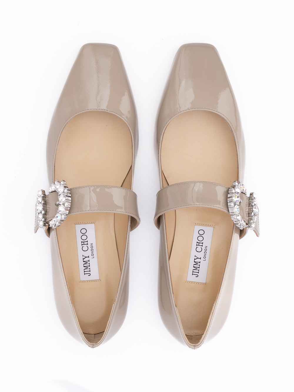 100% Authentic Jimmy Choo Taupe Grey Patent Leather Chery Ballet Flat