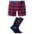 The Lyle & Scott OTIS men’s boxer (code LS-UW-GFT-012-3323) is the perfect choice for those seeking comfort and style in their underwear. Made from a soft blend of 95% cotton and 5% elastane/lycra, this boxer offers a flexible fit that adapts to the body, ensuring freedom of movement and breathability all day long. The design features a refined checked pattern and an elastic waistband with the Lyle & Scott logo, a mark of quality and attention to detail. The set also includes a pair of coordinated socks with an argyle pattern and embroidered logo, creating a complete and stylish underwear set. Ideal for everyday wear, this set is perfect as a gift or to enhance your wardrobe with essential and fashionable pieces.