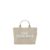 The cotton Medium Tote Handbag by Marc Jacobs, two rigid tubular top handles, top zipper closure, single interior pocket, adjustable and removable flat shoulder strap, contrasting iconic brand monogram print on front, contrasting iconic brand monogram patch applied on back.