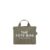 The cotton Medium Tote Handbag by Marc Jacobs, two rigid tubular top handles, top zipper closure, single interior pocket, adjustable and removable flat shoulder strap, contrasting iconic brand monogram print on front, contrasting iconic brand monogram patch applied on back.
