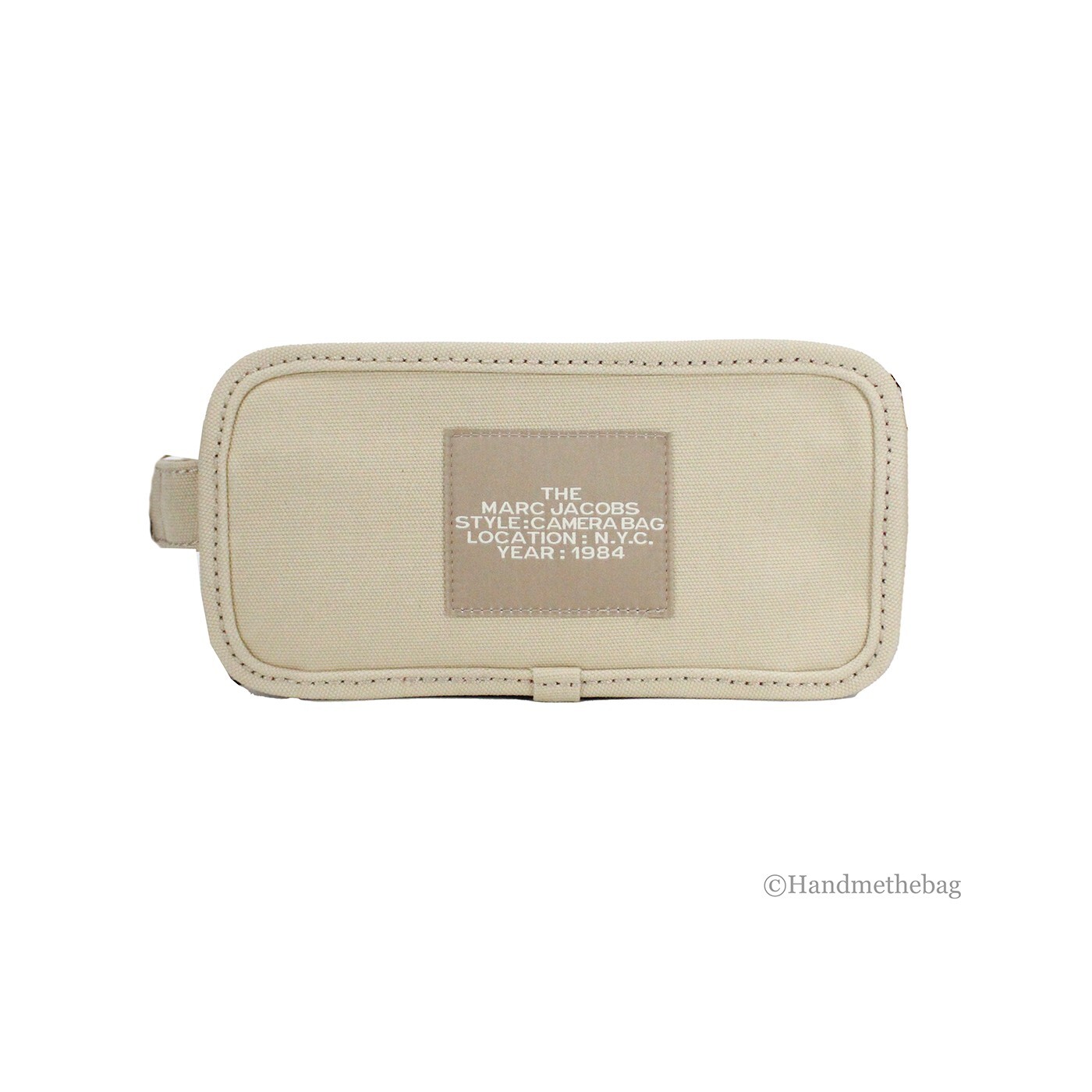 Introducing the Marc Jacobs The Camera Bag in a sophisticated beige canvas, a must-have accessory for the modern woman. This bag harmonizes style and functionality, designed for versatility to complement any outfit. Crafted from premium canvas and cotton, it boasts a solid exterior that ensures durability while maintaining an elegant appearance.