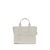 The Medium Tote leather Handbag by Marc Jacobs features a grained leather design. It has two stiff tubular handles at the top and a zipper closure. Inside, there is a single pocket for added convenience. The bag also features an adjustable and removable flat shoulder strap. The brand’s iconic monogram is embossed on both the front and back, adding a distinctive and recognizable touch.