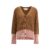 Marni’s brown cardigan in fine wool, with chenille underside in shades of pink, connected via faux raw seams in shades of beige, carefully handcrafted in Italy. Elegant and versatile design, perfect for pairing with both casual and formal looks.