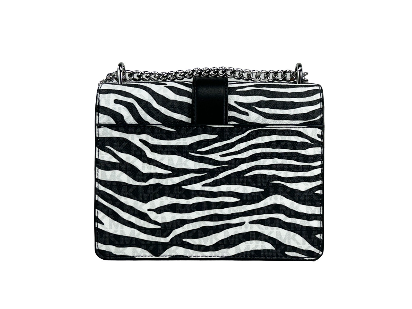 Elevate your accessory collection with the Michael Kors Greenwich Small Print Logo Crossbody Tote Chain Bag. This chic and versatile bag is expertly crafted from high-quality coated PVC, featuring a striking black and white animal print logo that adds a touch of modern sophistication to any ensemble. Designed for the contemporary woman on the go, it offers a compact yet spacious interior with multiple compartments to keep your essentials organized.