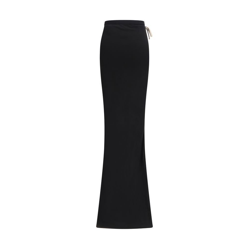 The long Skirt by Moncler + Rick Owens is a fitted jersey style featuring a side drawstring for an adjustable fit and a slit that adds a dynamic touch. The iconic Moncler logo patch provides a distinctive detail, for a look that combines elegance and streetwear functionality in a contemporary way.