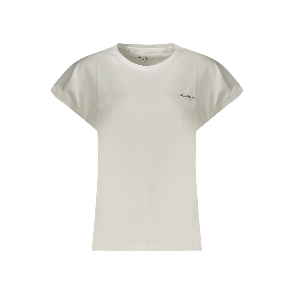 Elevate your casual wardrobe with the quintessential charm of PEPE JEANS. Presenting a sleek and stylish short-sleeved t-shirt that epitomizes effortless chic. Its crisp Bianco hue serves as a canvas for the iconic PEPE JEANS print and logo, masterfully crafted from 100% organic Cotone for supreme comfort and a gentle touch to the environment. Whether paired with denim or layered under a jacket, this tee is a testament to modern, conscious fashion.