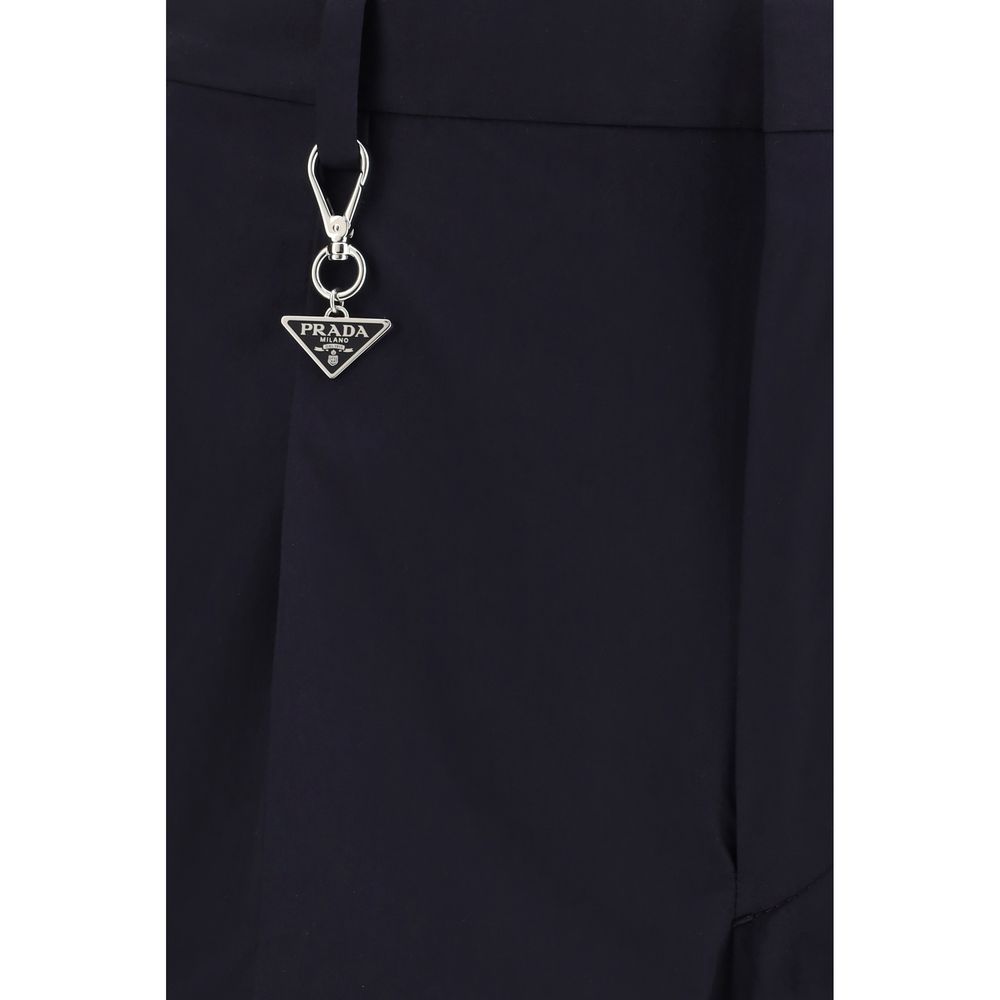 The Tailored cotton poplin Pants by Prada, crafted with clean lines and a precise, structured silhouette. The concealed zip and hook closure preserves a minimal aesthetic, while belt loops provide added practicality. Double front pleats offer subtle volume, complemented by side pockets and buttoned welt pockets at the back. The removable metal pendant with the enameled triangle logo adds an iconic, refined accent.