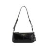 Satchel Shoulder Bag by Prada is a sleek, structured design crafted from worn-effect suede that lends a sophisticated, contemporary touch. Featuring a logo on the front, it has two long handles for comfortable shoulder carry. The zipper closure is embellished with a logoed padlock, a distinctive detail of the brand. Completing the design are the feet at the base, which protect the bag and preserve its shape. A refined and functional accessory, ideal for everyday use with style.