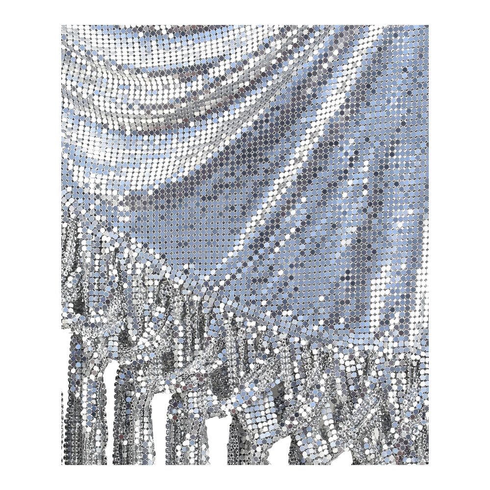 Rabanne’s Silver Belt is an iconic accessory that reflects the maison’s bold, futuristic style. Featuring a side closure with an adjustable buckle, it has an asymmetrical hemline embellished with embroidered bangs, giving movement and originality to the look. Crafted in Paco Rabanne’s classic silver metallic mesh, it combines elegance and character in a distinctive and striking design.