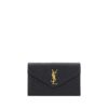 The leather Cardholder by Saint Laurent stands out for its essential yet refined design, featuring card slots on both sides for everyday practicality. The metal logo plaque on the front adds a distinctive touch, while the top compartment for banknotes completes the piece with a balance of functionality and understated elegance.