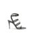 Saint Laurent’s Cassandra Sandals embody the brand’s bold elegance. Crafted from patent leather, they feature a multi-strap design with a square toe and lacquered stiletto heel that slims the figure with character. The iconic metal Cassandre motif embellishes the upper, while the adjustable ankle strap ensures a perfect fit. The leather sole and round metal engraved Saint Laurent plaque on the insole complete the design for a discreet yet unmistakable touch of luxury.
