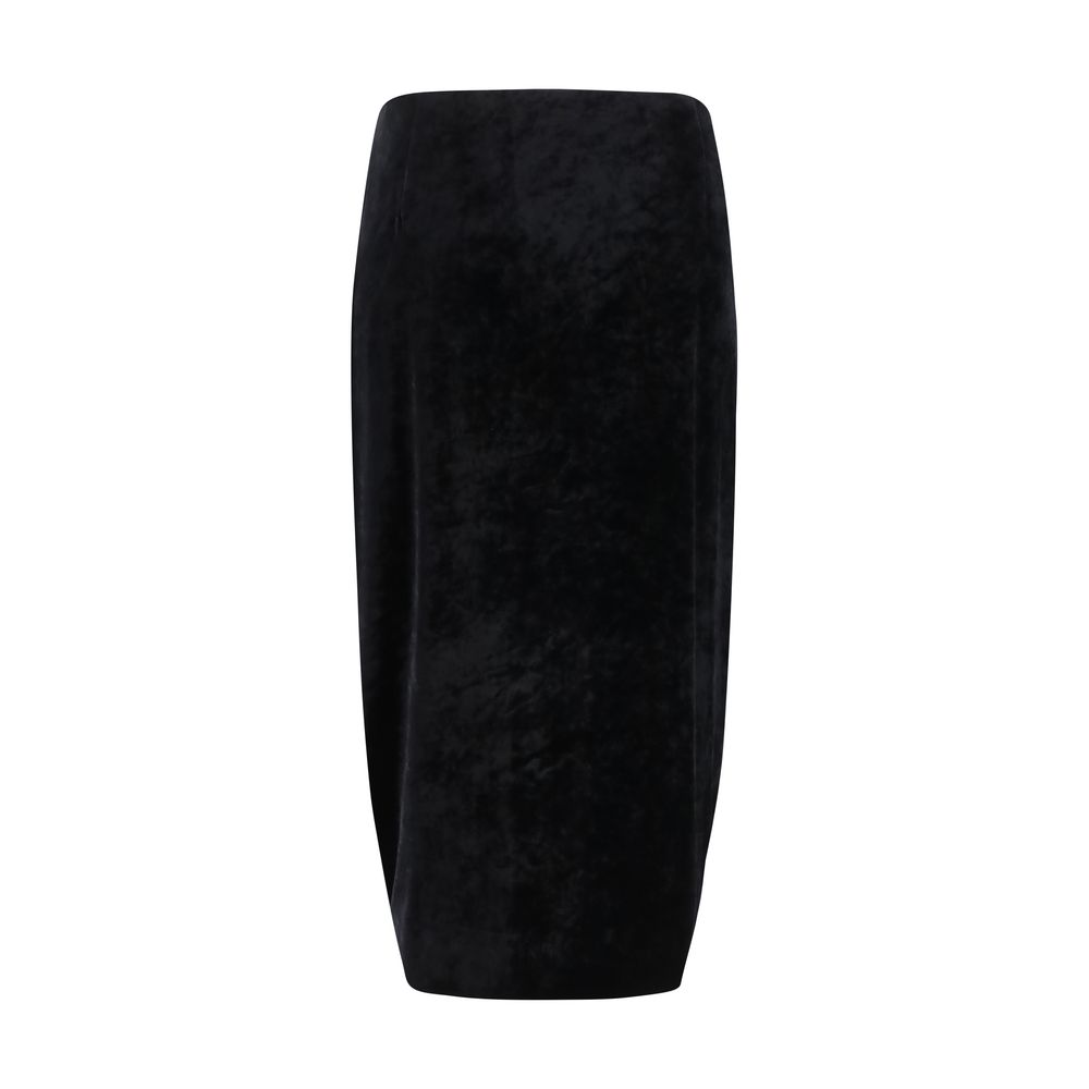 The velvet Skirt by Valentino features elegant front draping that adds movement and refinement to the silhouette. It is designed with an inner grosgrain belt for enhanced structure and fit, while darts at the back shape the figure. A side zip and hook-and-eye closure complete the piece with discreet functionality.