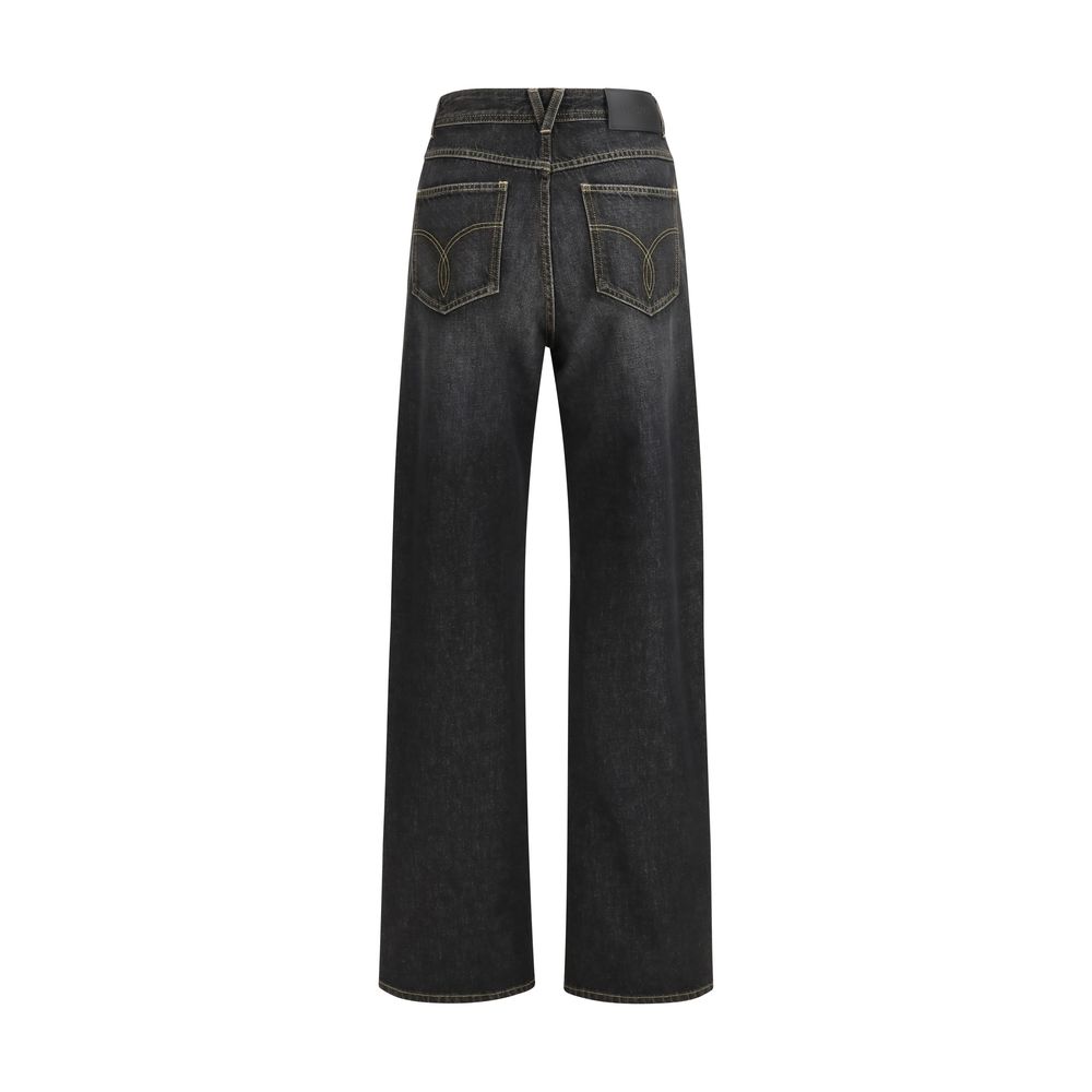 The straight Jeans by Versace with studs combine classic denim with iconic brand details, such as the Medusa button and leather logo appliqué. Decorated with studs and crystals, they offer a rock-chic touch. The five-pocket style and button and zip closure complete the practical and stylish design. Perfect for a bold and sophisticated look.
