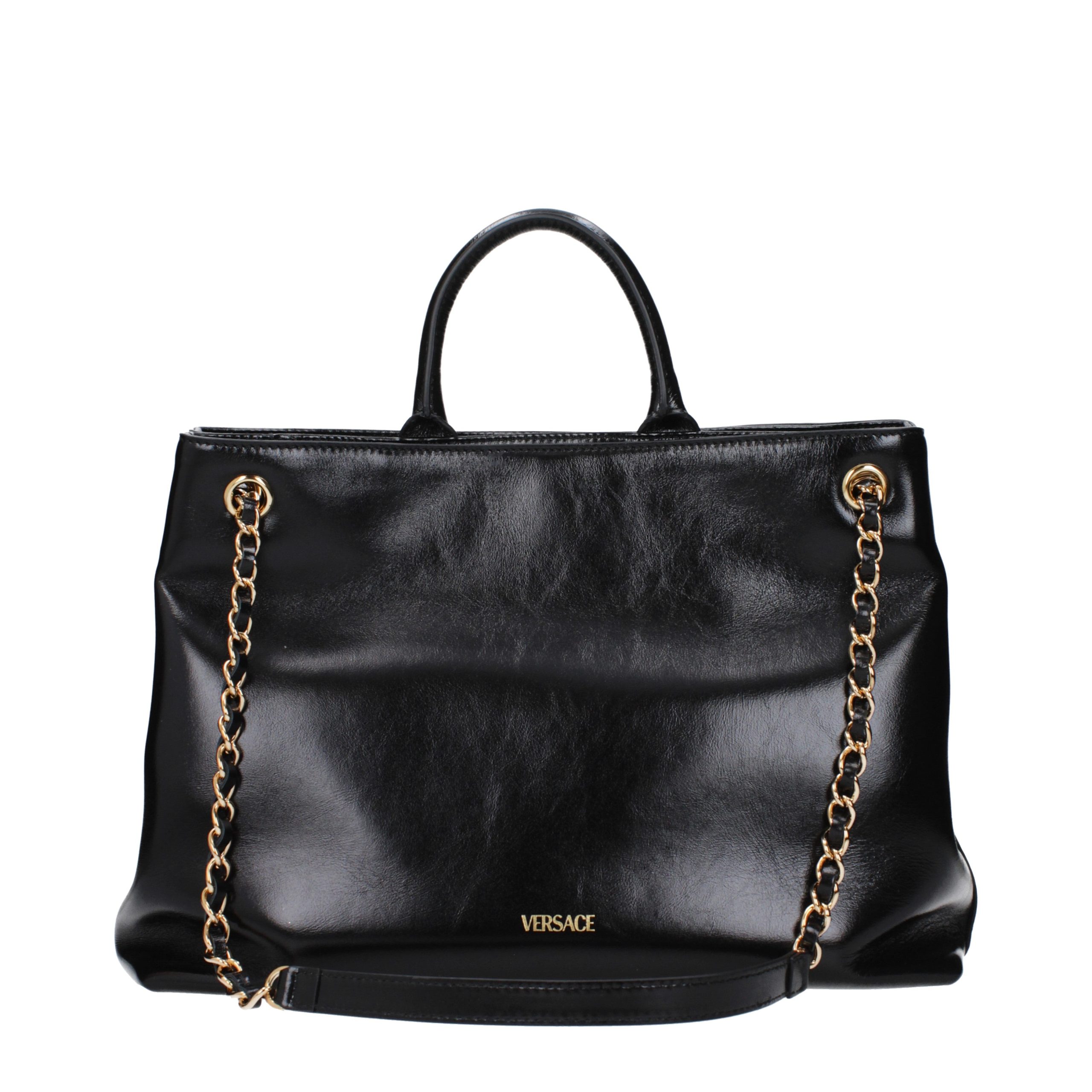 The product with MPN 10207151A150331B00VN and code F86648 leather in black is a handbags designed by Versace. It has features like front detail, aged effect, back logo.