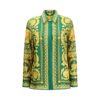 The printed silk Shirt by Versace captures the essence of the Maison’s iconic luxury. Crafted from pure silk, it drapes the silhouette with the lightness of a precious fabric, while the timeless Barocco print unfolds across the surface like an artistic motif rich in visual identity. The short-point collar adds a refined sense of balance, enhanced by a concealed button closure that preserves the shirt’s clean, uninterrupted lines. Angled cuffs, finished with buttons, complete the piece with a touch of sophisticated sartorial precision.