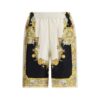 Versace’s Pure Silk Shirt is a luxury garment with distinctive character, embellished with the iconic Barocco print that decorates the entire surface. The short point collar and concealed button closure enhance the sophistication of the design, while the angular button cuffs add an elegant sartorial touch.