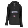 Dive into the epitome of bold sophistication with Woolrich’s long-sleeved parka. A true trendsetter’s choice, featuring a sleek removable fur-trimmed hood that promises to elevate your chilly-weather ensemble instantly. This black jacket boasts a quartet of pockets for your essentials, while the zip and button closure secures you in style. Adorned with the signature Woolrich logo, it’s an embodiment of luxury meets practicality.