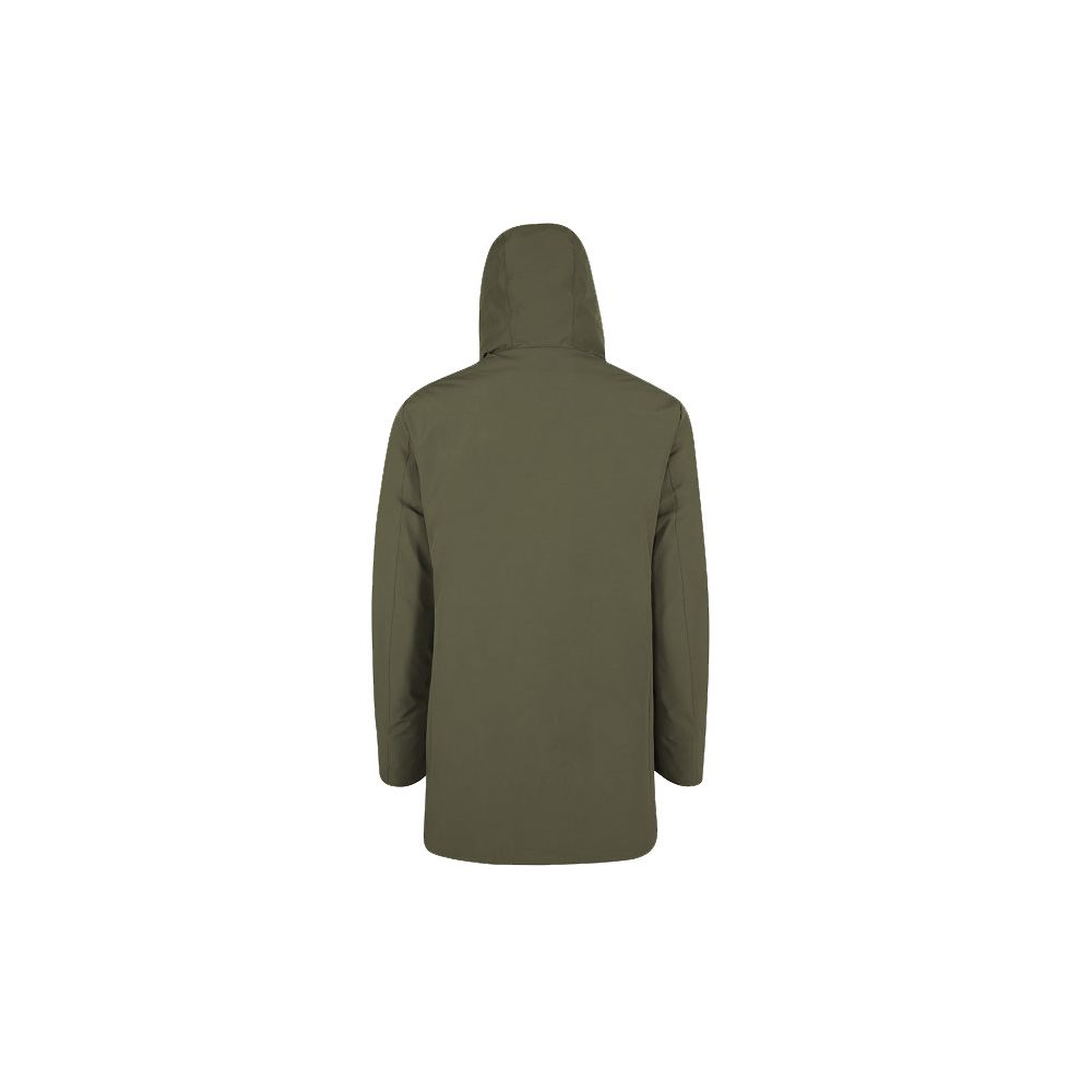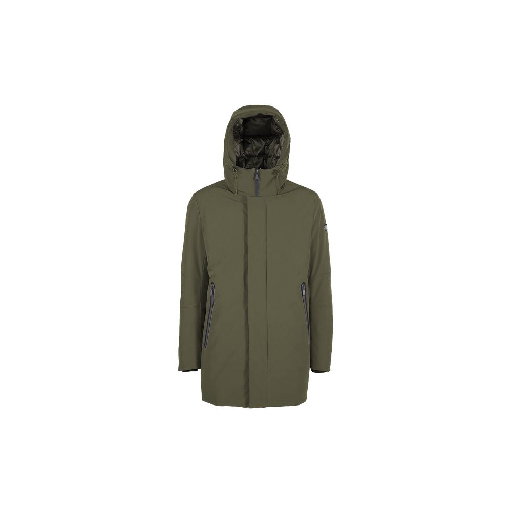Yes Zee hooded jacket, military green color, four pocket design, front zip and button closure, the technical fabric guarantees protection from the wind and cold.