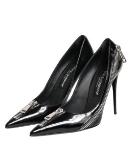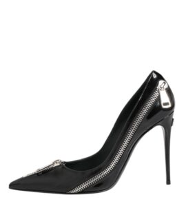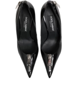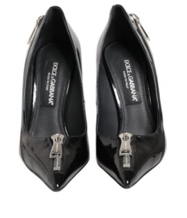 Dolce & Gabbana Black Patent Leather Zipper Heels Pumps Shoes