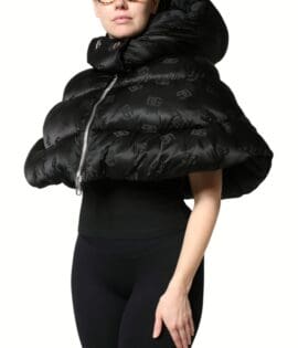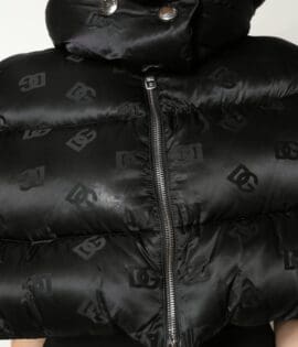 Dolce & Gabbana Black Padded Puffer Hooded Full Zip Cropped Jacket