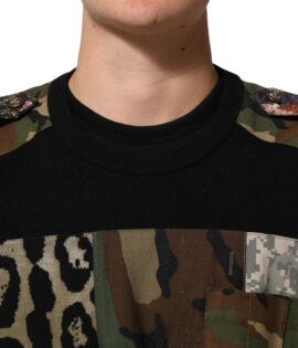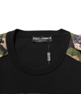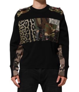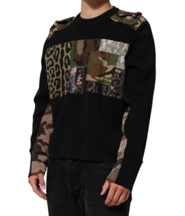Dolce & Gabbana Black Patchwork Crew Neck Pullover Sweater