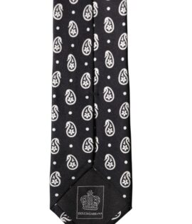 Dolce & Gabbana Black Paisley 100% Silk Adjustable Men Tied Necktie Tie