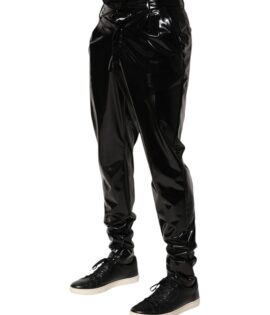 Dolce & Gabbana Black Polyester Mid Waist Men Trouser Pants