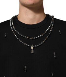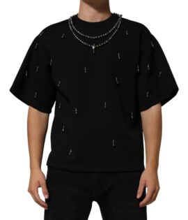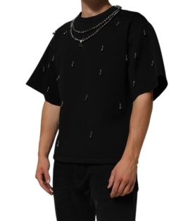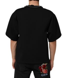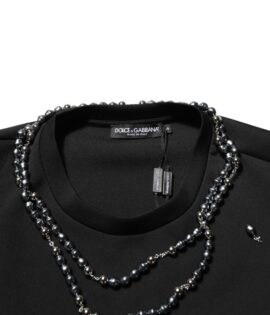 Dolce & Gabbana Black Polyester Necklace Embellished T-shirt