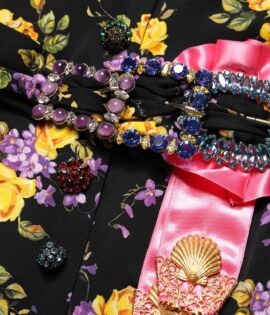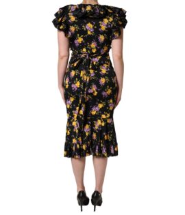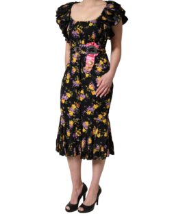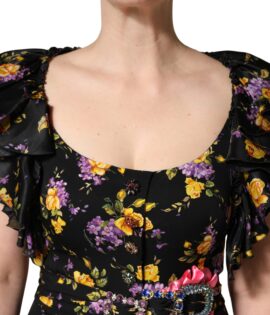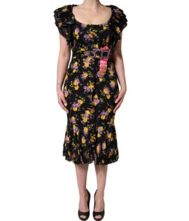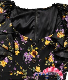 Dolce & Gabbana Black Purple Crystal Brooch Silk Midi Dress