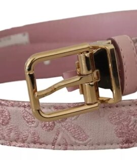 Dolce & Gabbana Pink Jaquard Embroidered Gold Tone Metal Buckle Belt