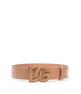 Dolce & Gabbana Rose Gold Leather Logo Engraved Metal Buckle Belt