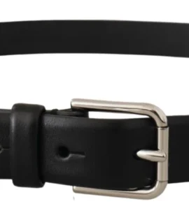 Dolce & Gabbana Black Calf Leather Silver Metal Buckle Belt