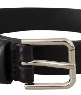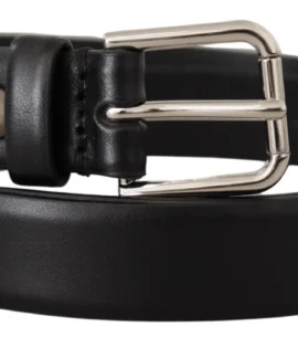 Dolce & Gabbana Belt Black Calf Leather Silver Tone Metal Buckle