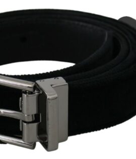 Dolce & Gabbana Black Velvet Leather Silver Buckle Belt